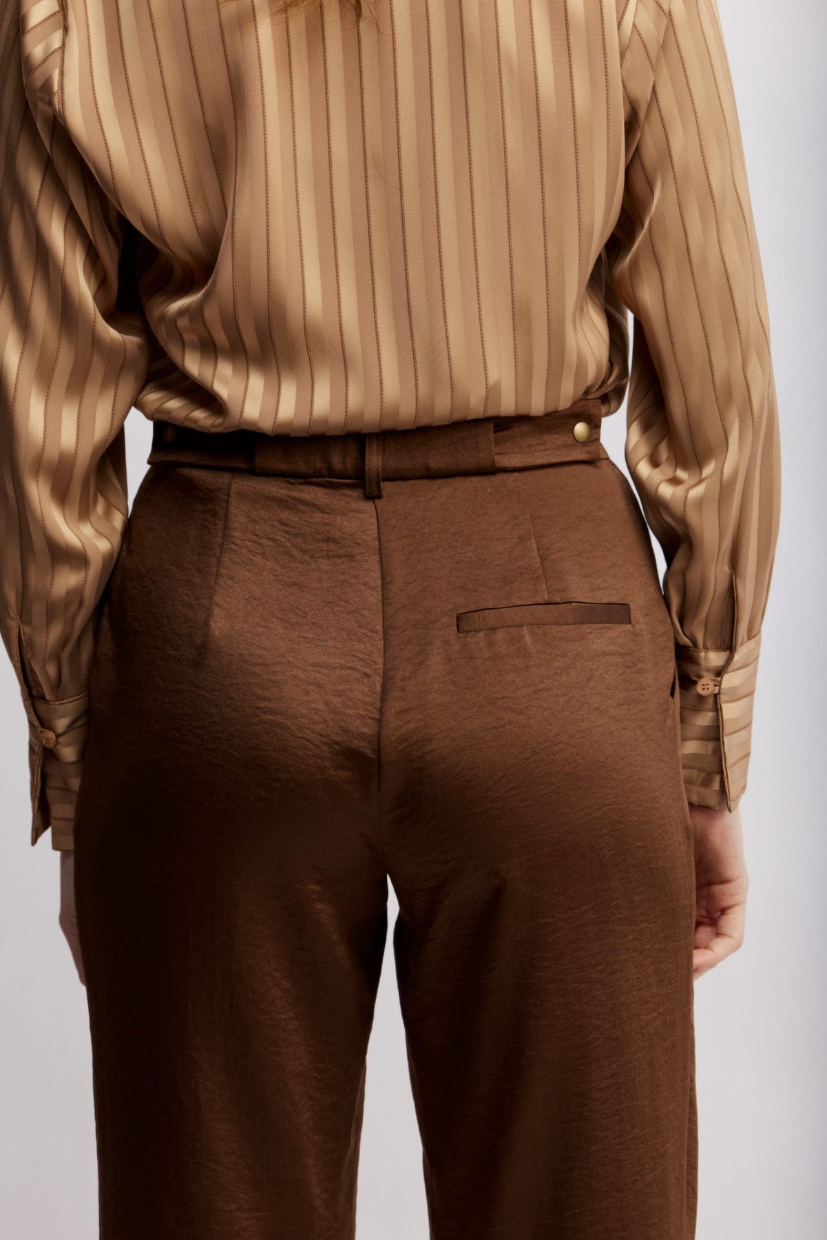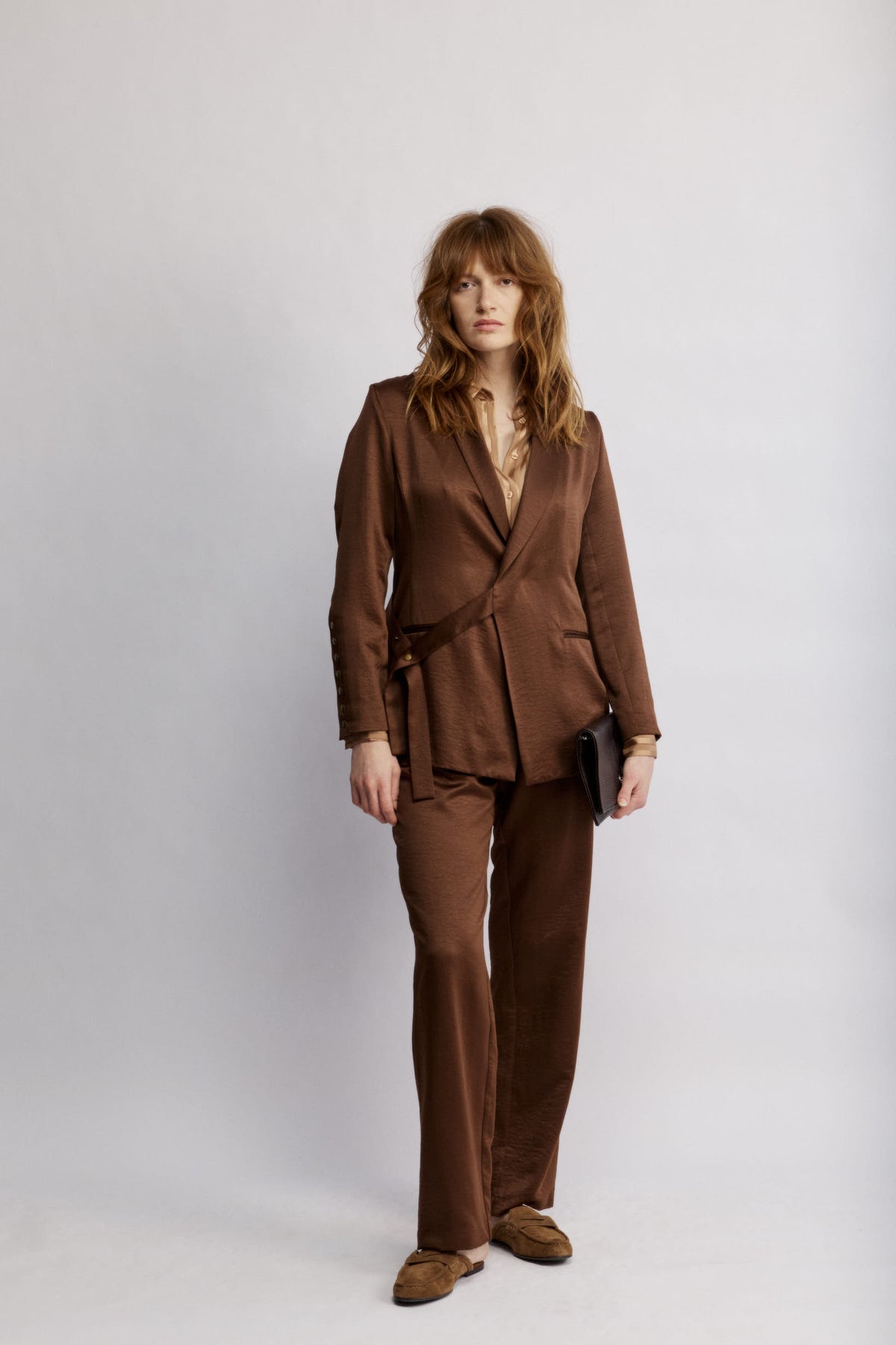 מכנס קארלה הוא מכנס מחויט בגזרה ישרה וקלאסית, שיושב נקי במותן ומאריך את קו הרגל. לבד יש נפילה חלקה שמעניקה מראה אלגנטי ללא מאמץ. מחמיא בזכות הפרופורציות המדויקות ומשתלב מצוין עם מכופתרת ומוקסין ליום עבודה, או עם טי וסניקרס למראה יומיומי יותר.