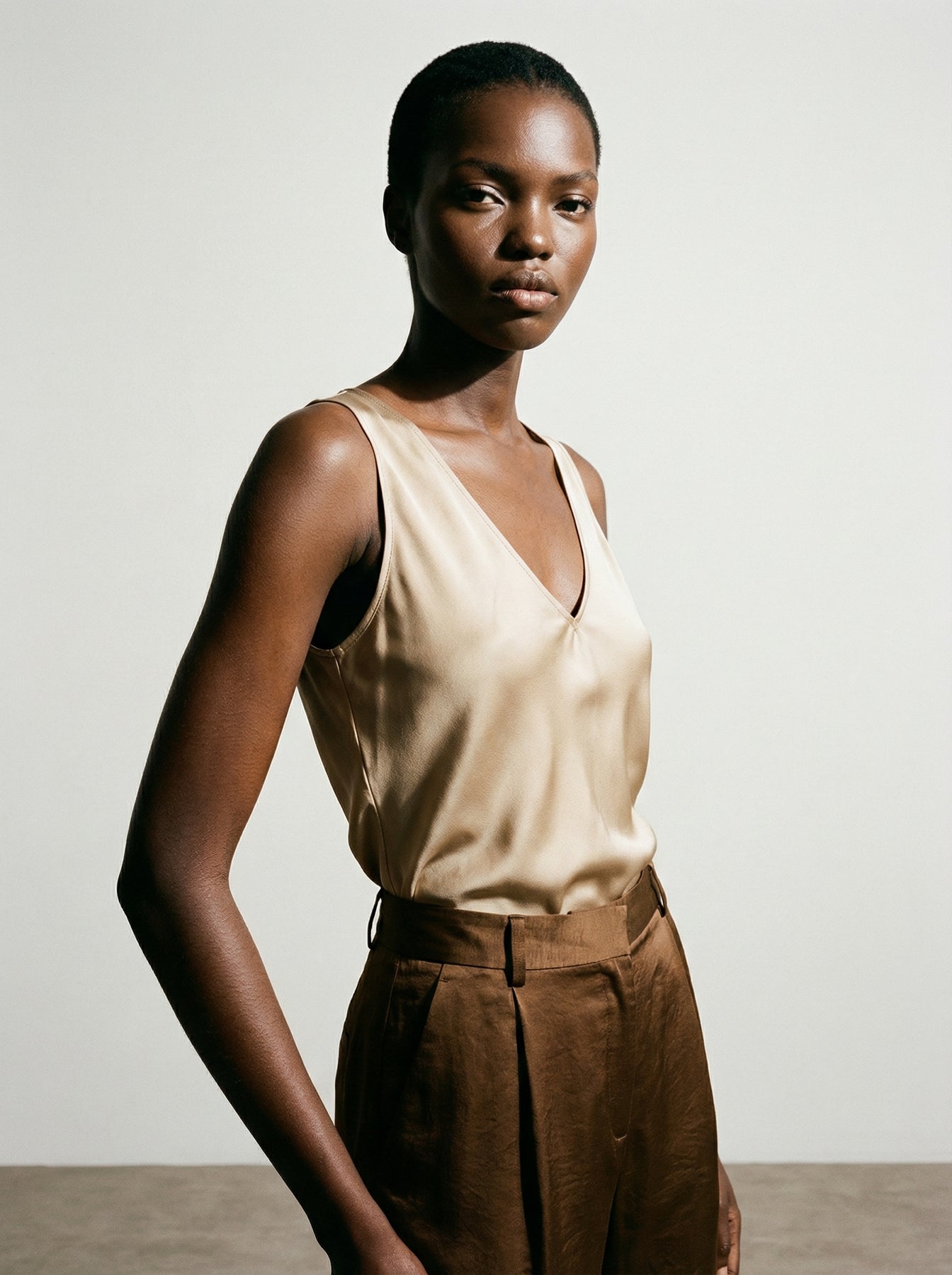 The Efi top is a clean V neck camisole with a fabric that falls softly on the body. It creates an effortlessly elegant look on its own and layers seamlessly under a blazer or cardigan. A classic piece every wardrobe needs.