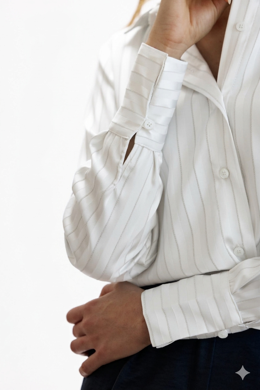 חולצת נוני היא חולצה מכופתרת בגזרה ישרה ונשפכת, עם הדפס פסים עדין וצווארון קלאסי. הבד קליל ונעים, נופל ברכות ויוצא מראה מחויט ללא מאמץ. משתלבת מצוין עם מכנס מחויט למראה אלגנטי, או עם ג׳ינס למראה קאזואלי.