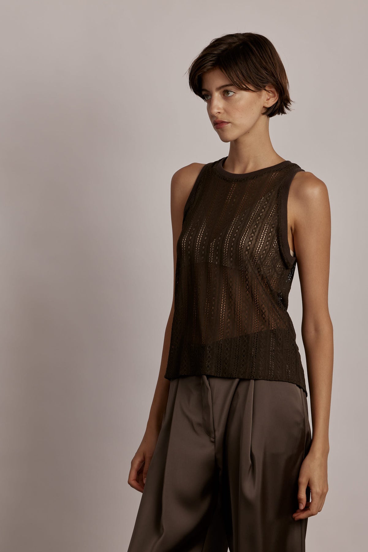 The Lulu Top is made from sheer lace with a short-sleeved, round neckline cut. Perfect layered over a camisole or under a blazer.