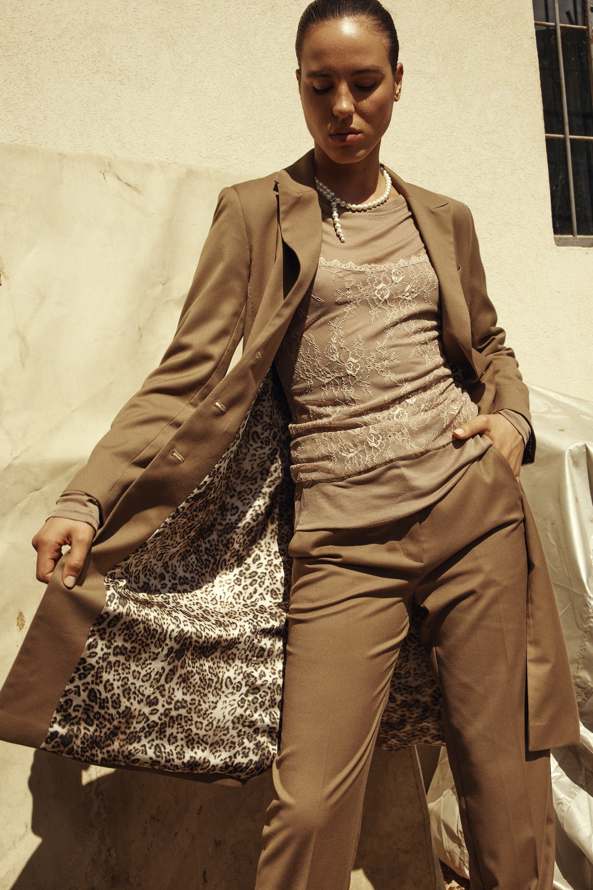 Ariana Jacket — a long tailored jacket with a clean and precise cut. Featuring front button closure and elegant welt pockets, it offers a timeless, classic look. A refined piece that comes back every cool season to elevate any outfit.