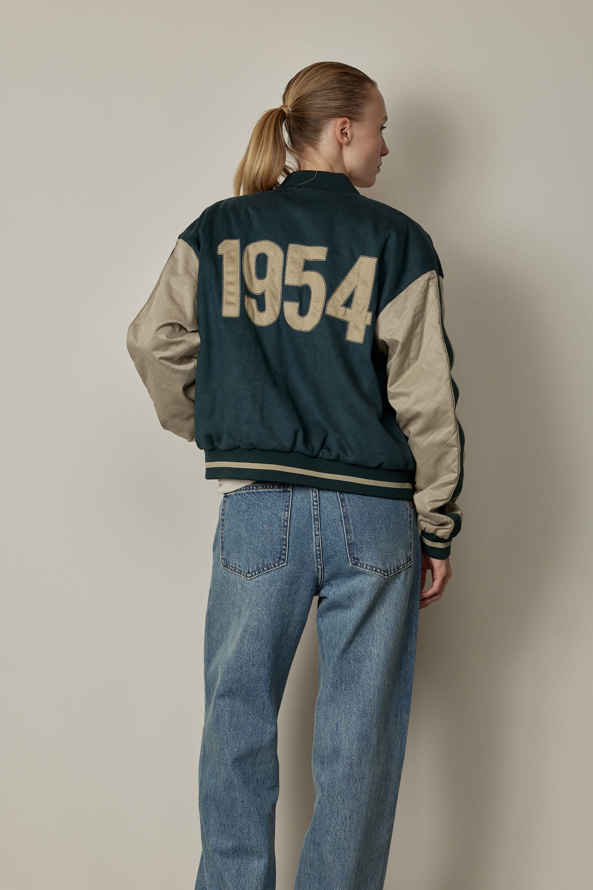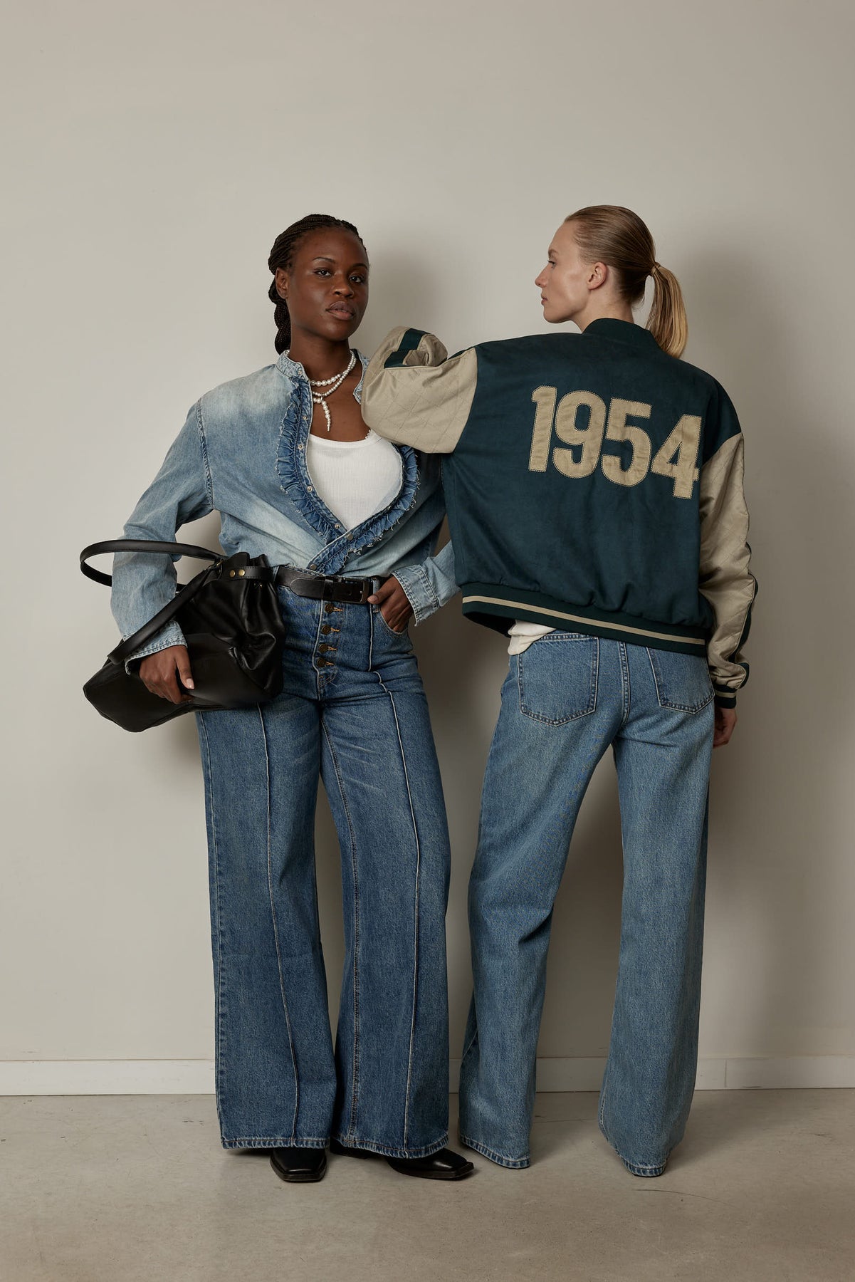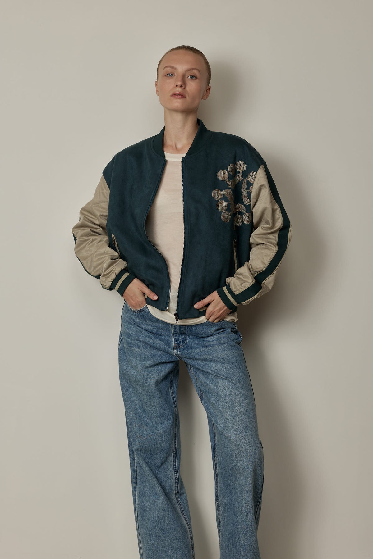 The Marissa Jacket is a bomber jacket featuring Maskit’s iconic flower embroidery on the front, and the number 1954 on the back, the founding year of the fashion house. Made from a suede like texture. Size up for an oversized look.