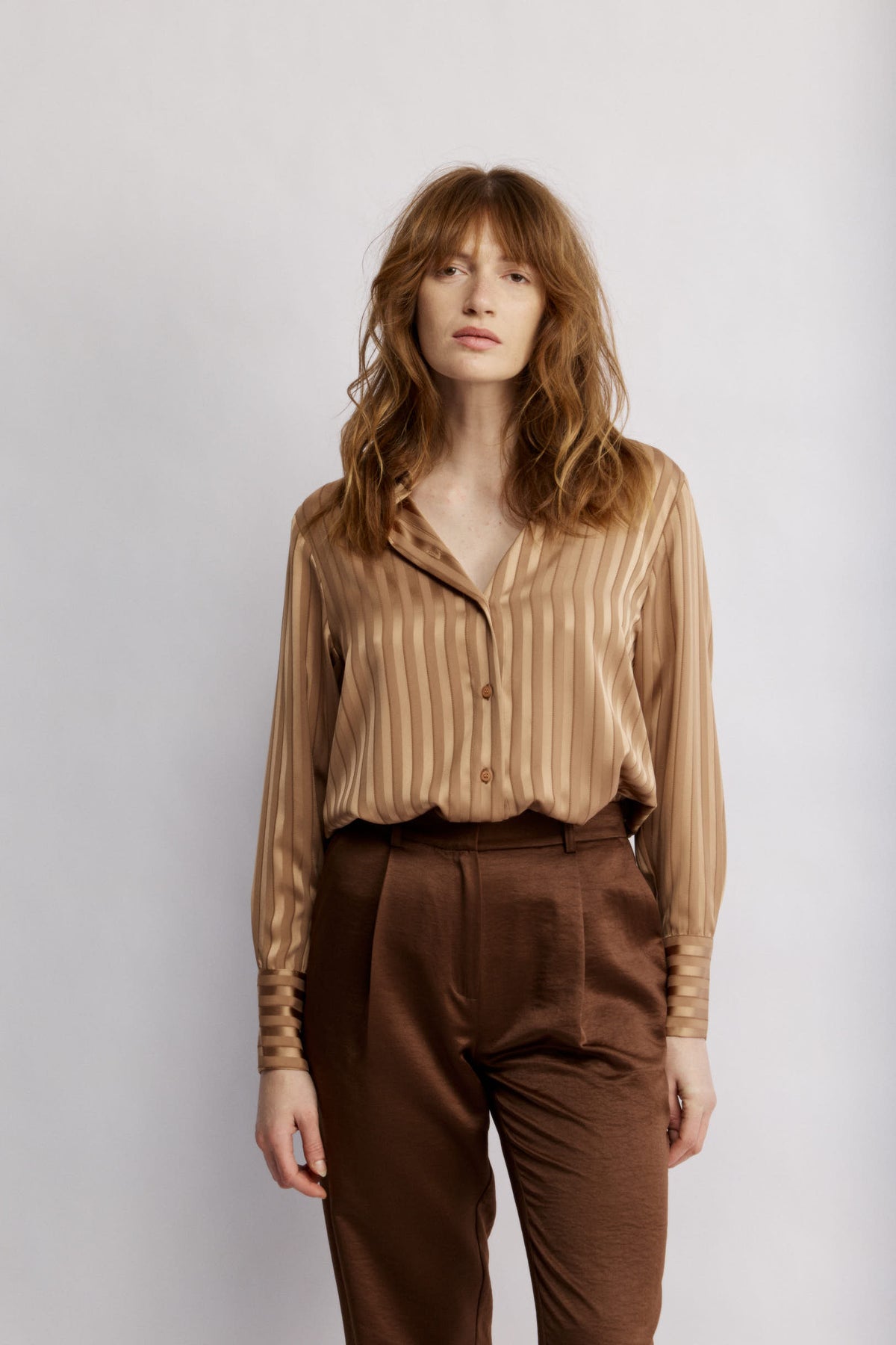 מכנס קארלה הוא מכנס מחויט בגזרה ישרה וקלאסית, שיושב נקי במותן ומאריך את קו הרגל. לבד יש נפילה חלקה שמעניקה מראה אלגנטי ללא מאמץ. מחמיא בזכות הפרופורציות המדויקות ומשתלב מצוין עם מכופתרת ומוקסין ליום עבודה, או עם טי וסניקרס למראה יומיומי יותר.