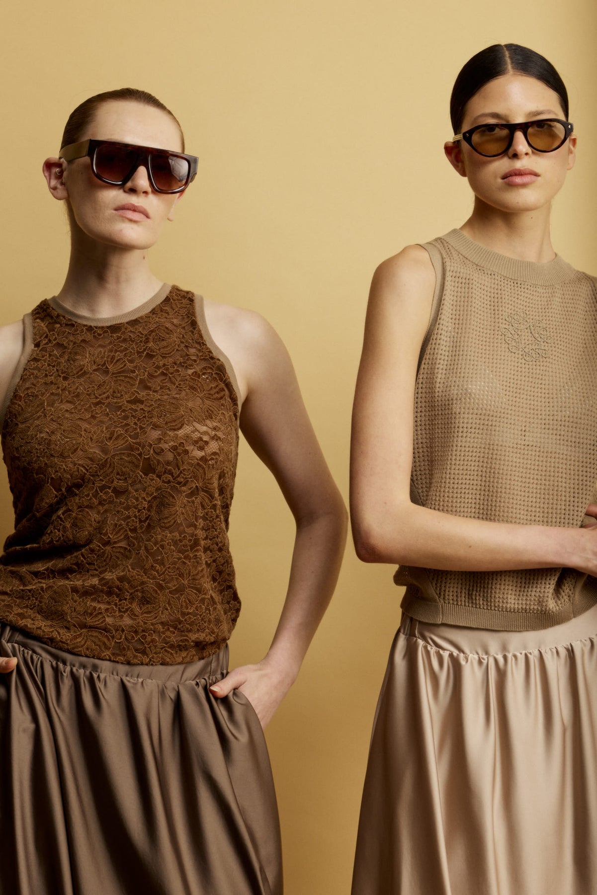 The Lulu top pairs delicate lace with a velvet-like textured finish that adds depth and softness. Featuring a sleeveless cut and classic round neckline, it works beautifully on its own or layered. Easy to style with jeans, skirts, or tailored trousers, it brings a feminine, fashion-forward touch with zero effort.