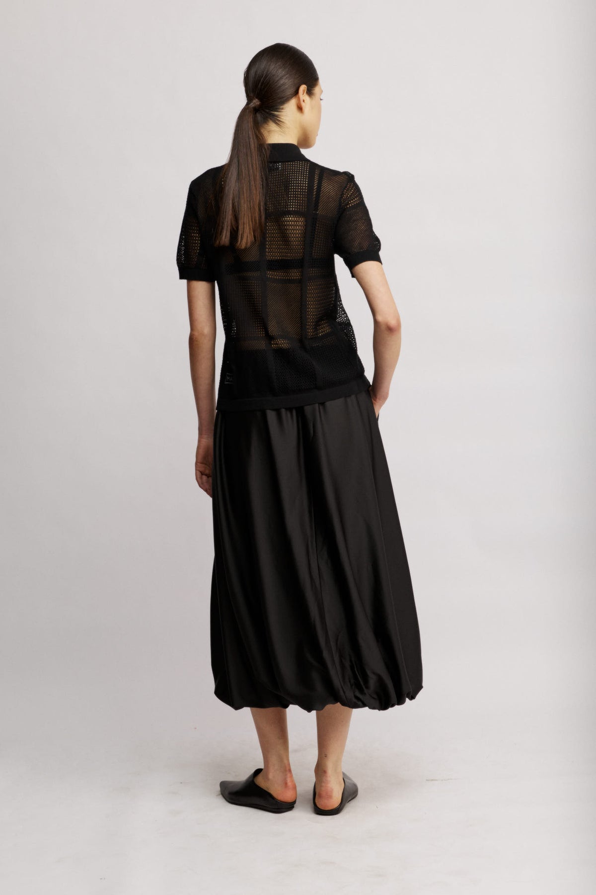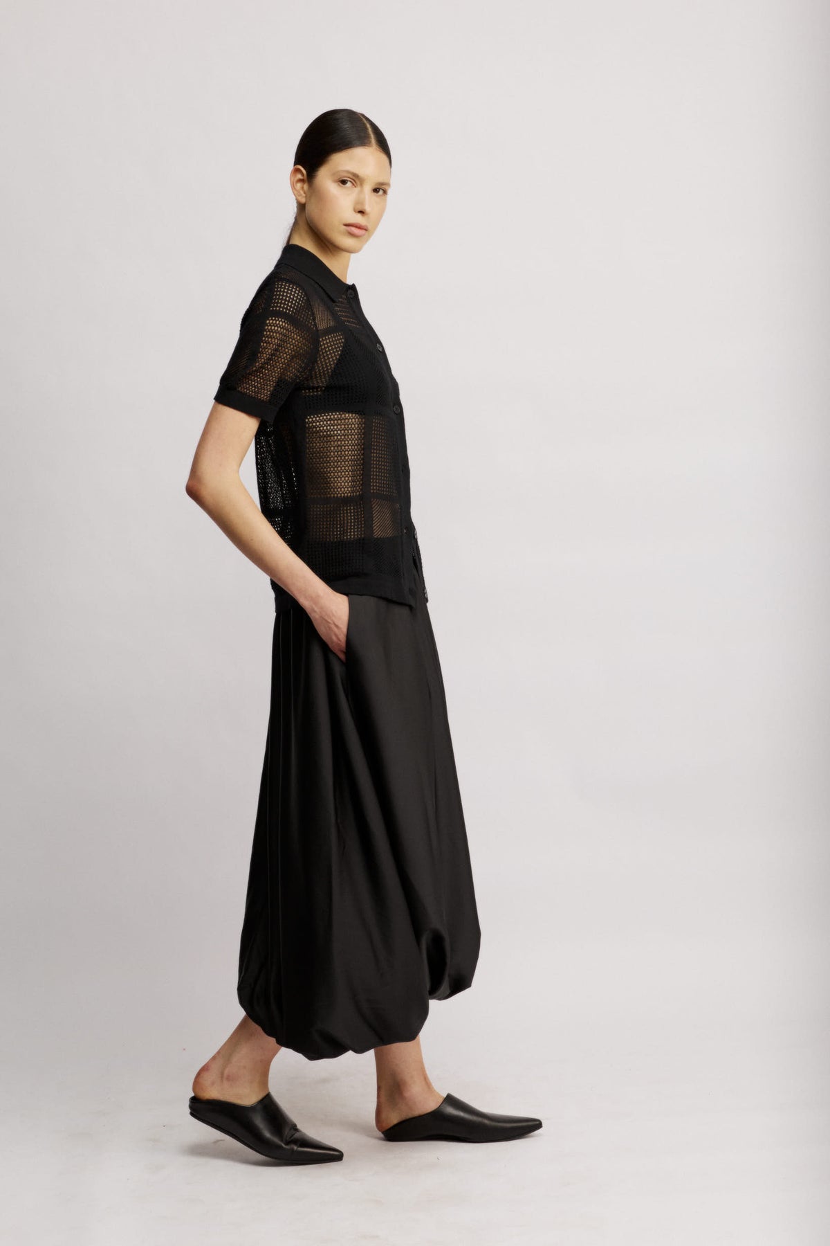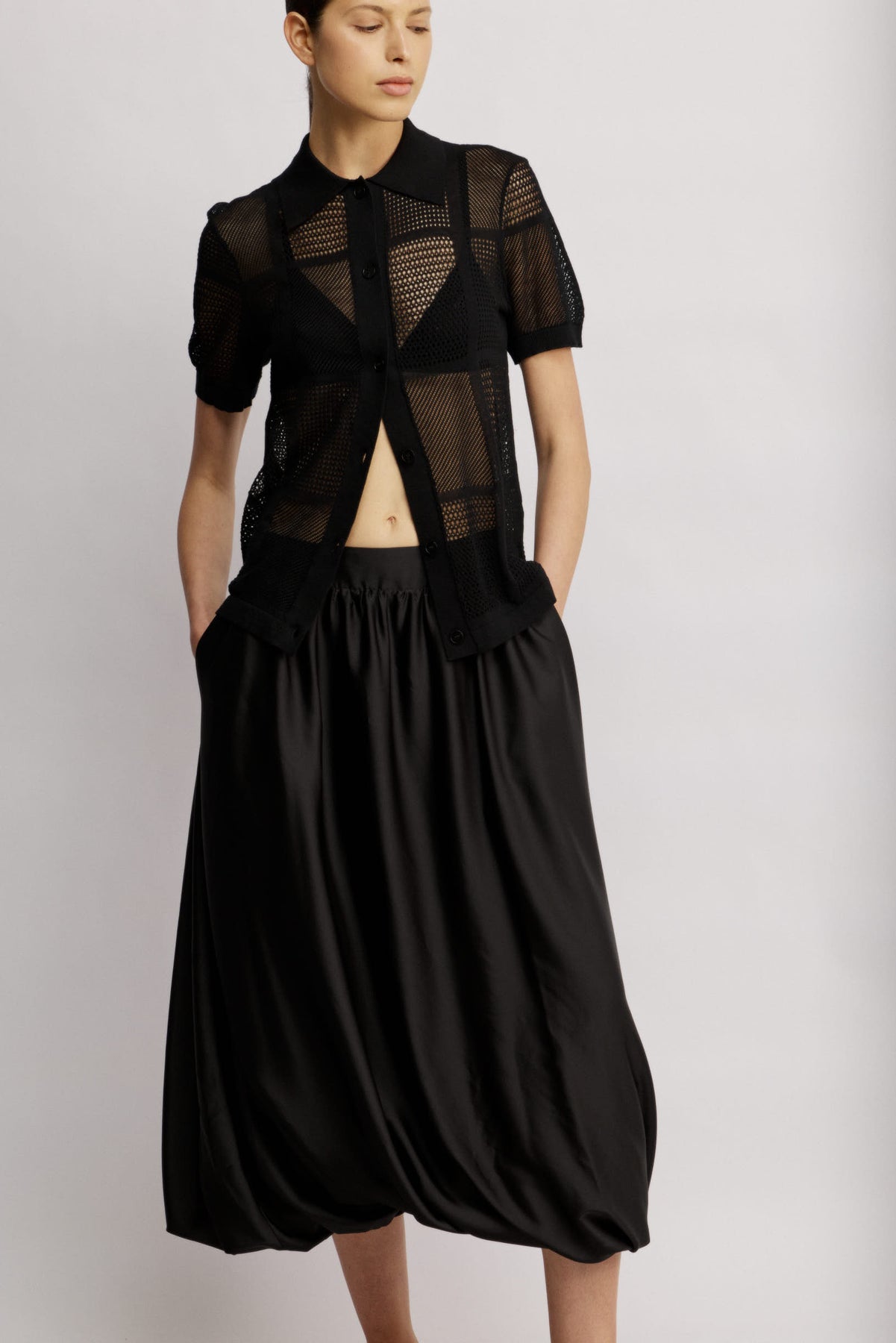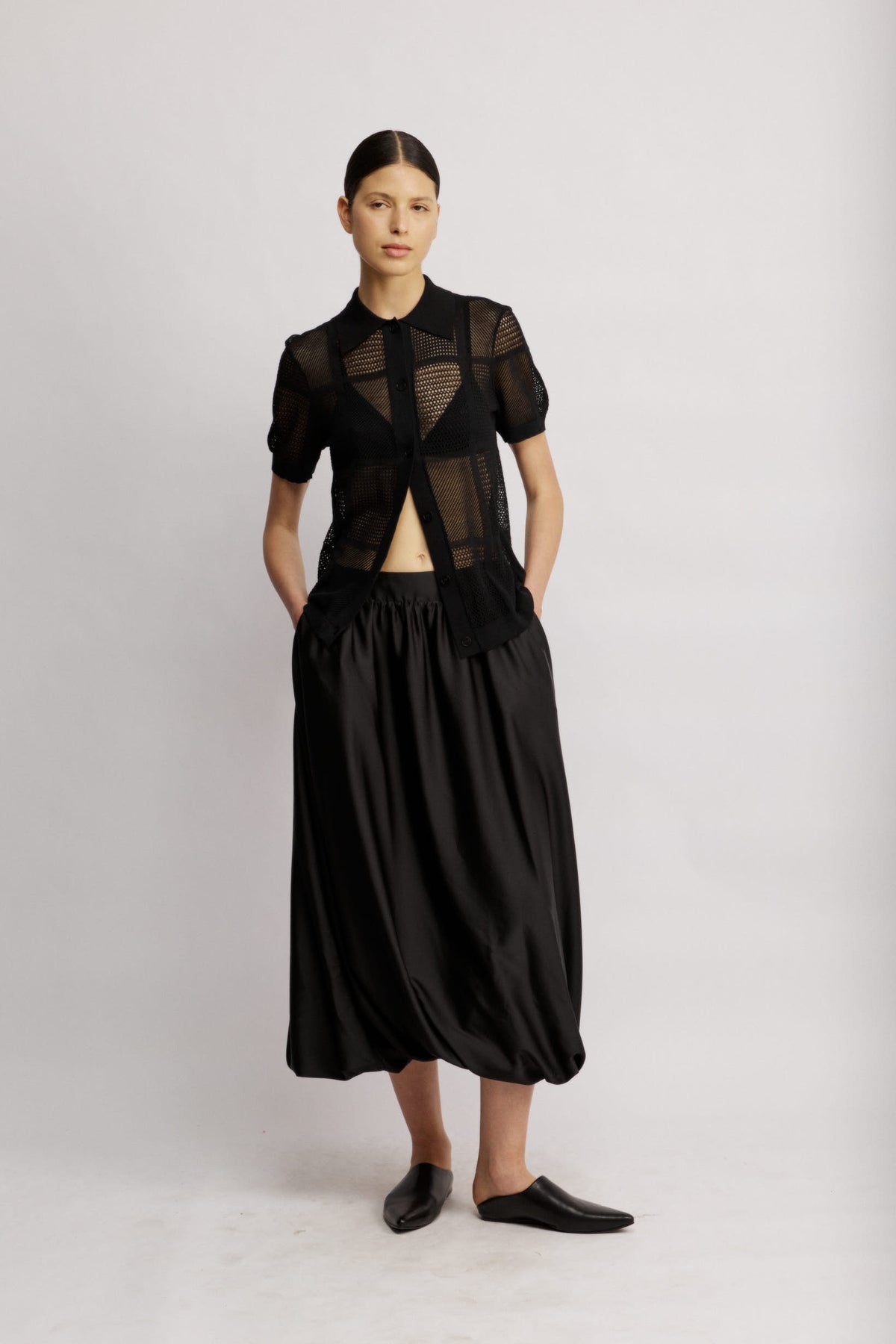 Alexis חצאית מידי שחורה עם כיסים צדדייים ונפח המעניק תנועה מסאטן מייקרופייבר איכותי משכית