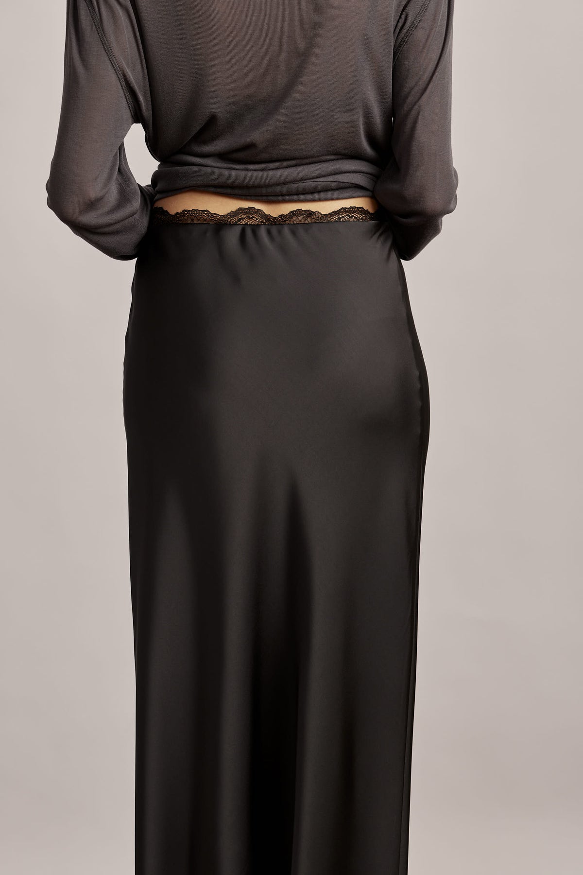 The Eden Skirt is a full-length straight silhouette, detailed with a delicate lace band at the waist and clean lines throughout. Subtle elegance with a unique touch