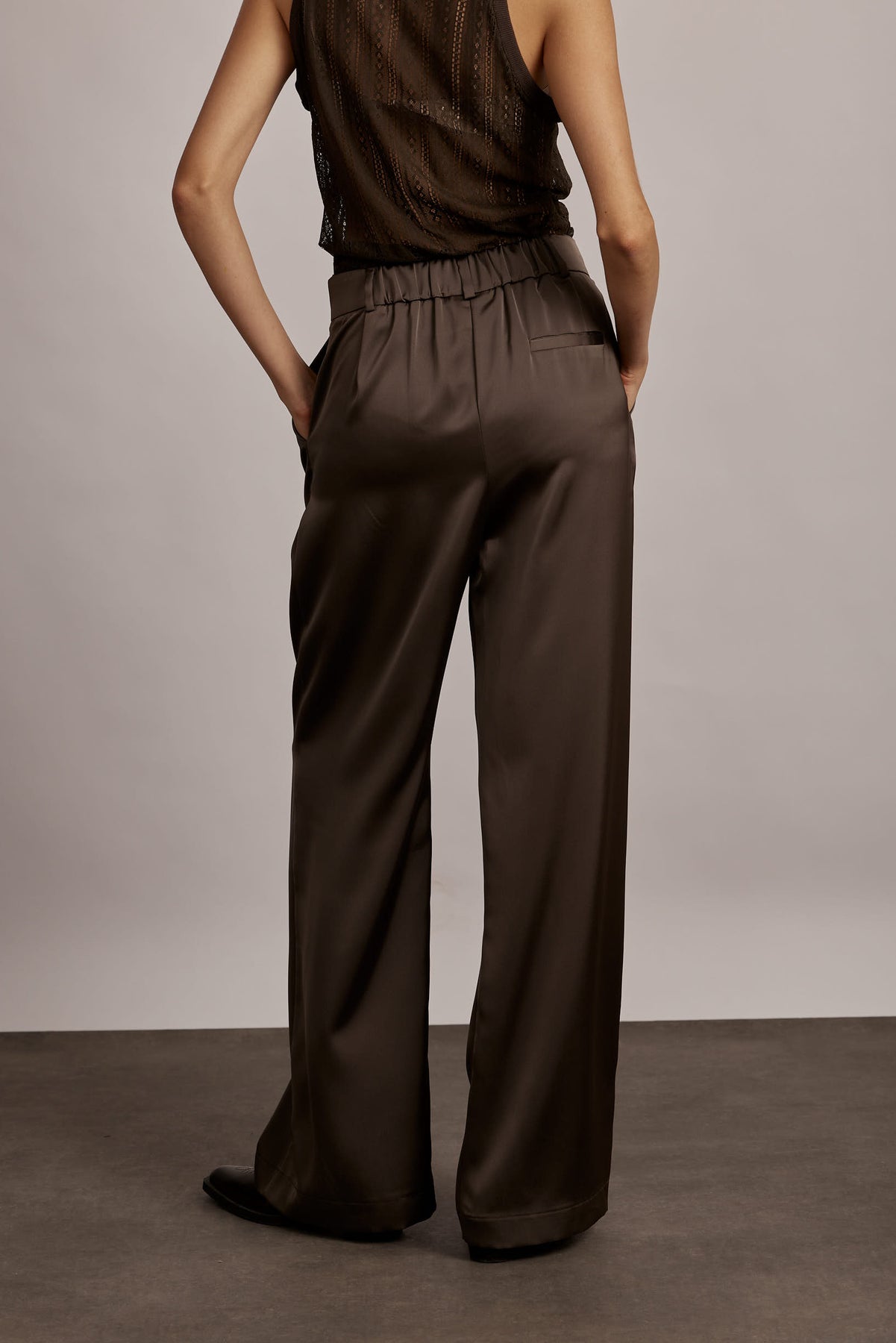 The Marco Pants feature a clean silhouette with a discreet back elastic waistband and smooth front closure. The soft fabric creates an easy, fluid drape with tailored lines